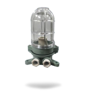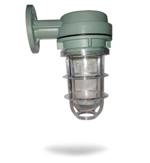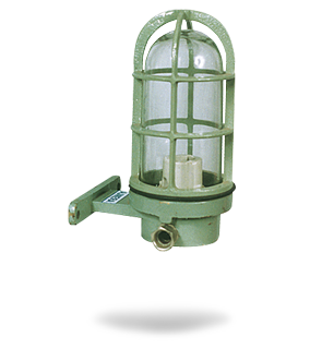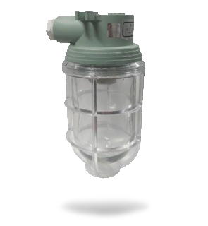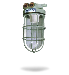 Die cast Aluminium body and die cast protective wire guard with clear U shape glass with rubber gasket, porcelain BC or ES holder, 2 way connector with 2 nos. cable entries with plastic cable glands. SS Hardware suitable upto 60W Lamp. |