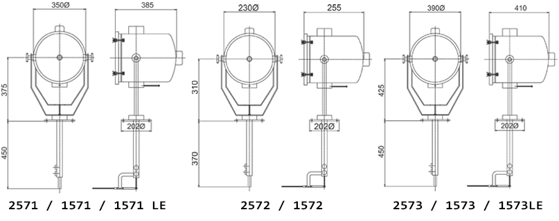 | 1571 | Security Search Light suitable upto 1000W Halogen lamp. Aluminium body with MS wheel house assembly for Horizontal & Vertical movements. Powder coated finishing, mirror glass reflector with front Aluminium ring and toughened glass fitting |