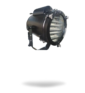 | 2571 | Security Search Light suitable upto 1000W Halogen lamp, Brass body with hot air escape provision and MS wheel house assembly for Horizontal & Vertical movements. Powder coated finishing, mirror polshed glass reflector with front Aluminium ring and toughened glass fitting with exhaust fan |
